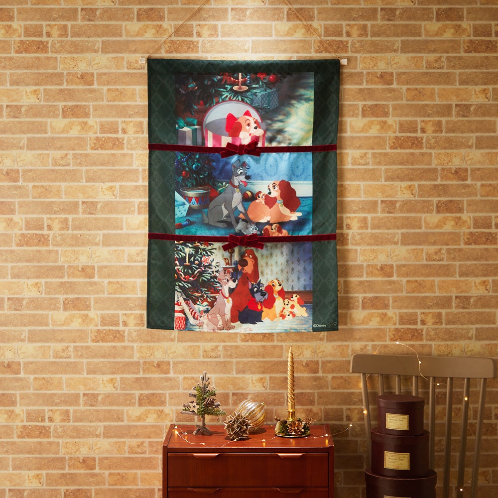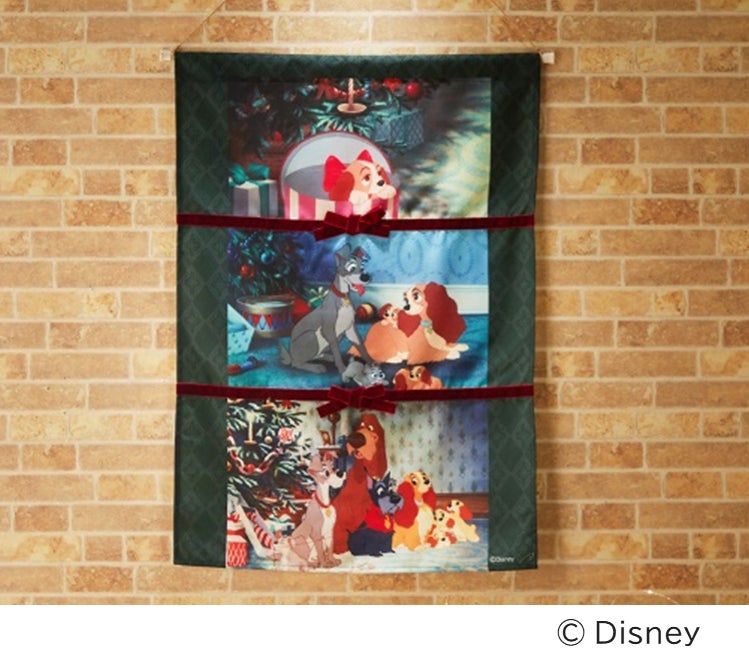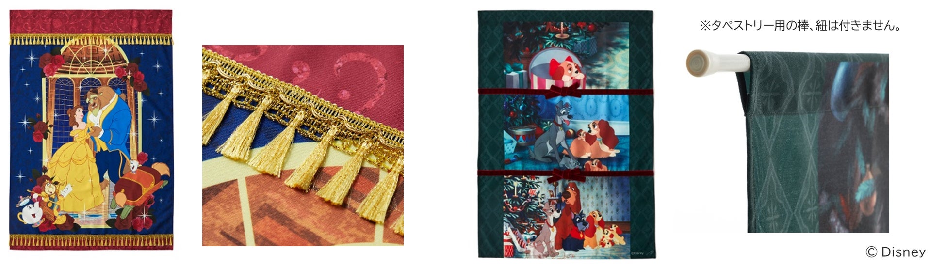 壁掛け仕様で場所を取らない「壁掛けクリスマスツリー」にディズニーデザインが新登場しました。コンパクトな仕様なので、家族みんなと一緒にオリジナルのオーナメントを飾り付けて楽しむことができます。また、ディズニーの物語の中で「クリスマスの場面」「クリスマスを連想させるシーン」をピックアップした「クリスマスタペストリー」は、タッセルやリボンをあしらい、立体感や高級感を感じさせるデザインがポイントです。
