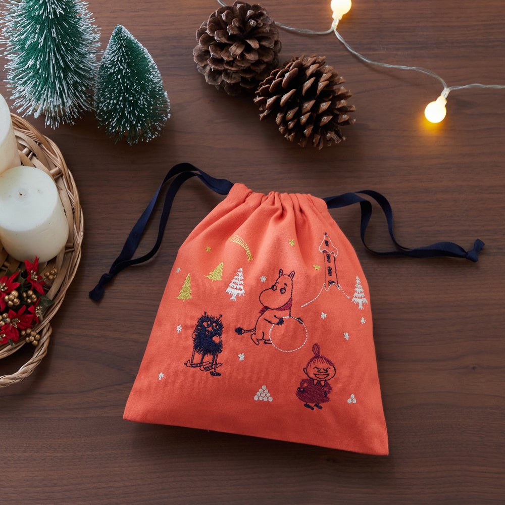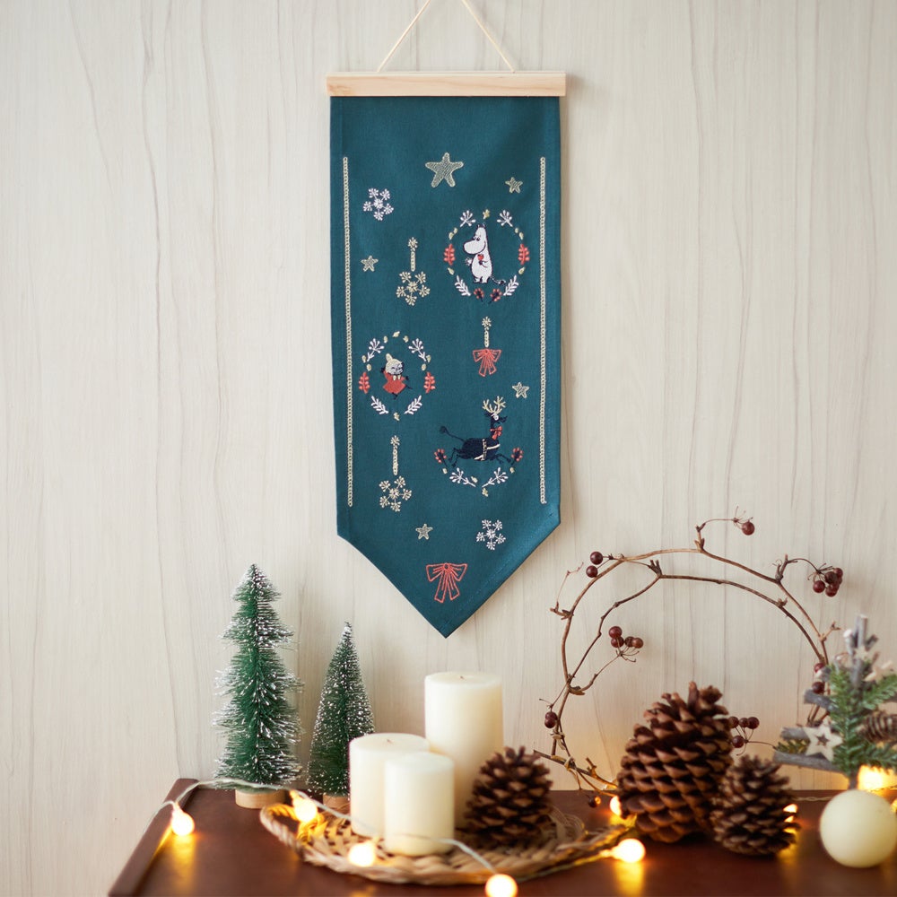ムーミン「吊り下げ棒付きクリスマスタペストリー」と「刺繍入り巾着」