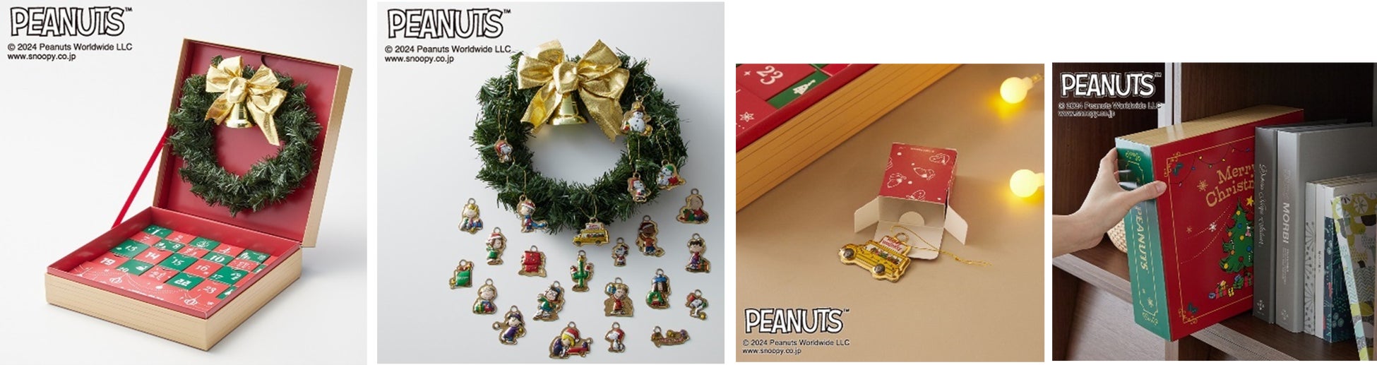 スヌーピーファンの声に応え、ベルメゾンオリジナルリース付きアドベントカレンダーを開発しました。本をモチーフにした収納箱に、24種類のPEANUTSの仲間たちをデザインしたミニオーナメントが付いた豪華なセット商品です。日本ではグッズ化が珍しいモチーフも含まれており、クリスマスまでのカウントダウンを楽しむことができます。