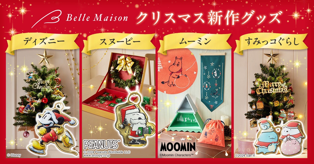 株式会社千趣会(本社:大阪市 代表取締役社長:梶原健司 以下千趣会)の通販事業ベルメゾンは、「ディズニー」「スヌーピー」「ムーミン」「すみっコぐらし」のキャラクターをデザインしたクリスマスグッズの新作7アイテムを、2024年11月1日(金)からベルメゾンネットにて販売開始します。