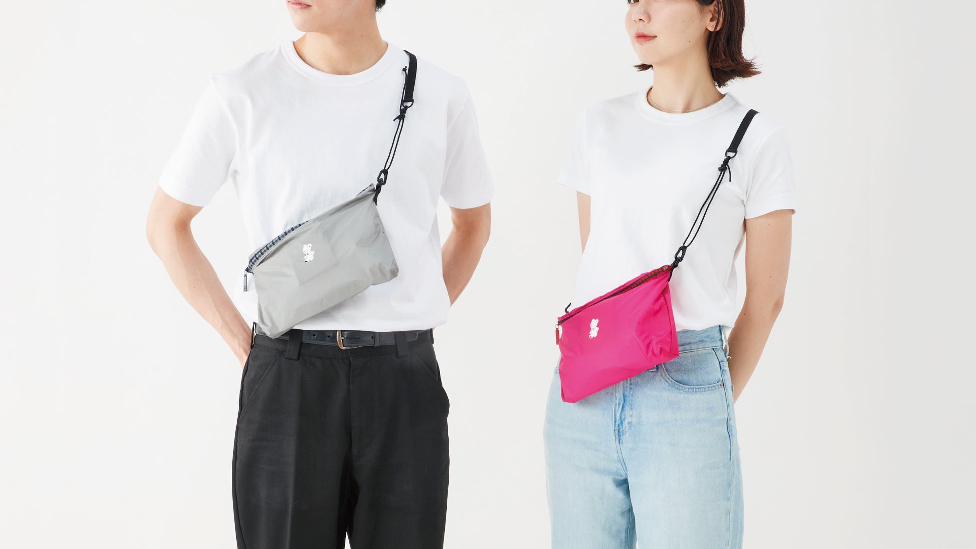 合繊の未来を提案する生地ブランド「KAJIF」が開発した世界最軽量クラスのナイロン織物〈ULTIMATE LIGHT®〉を使用した超軽量ポシェットとポーチがラインナップ。