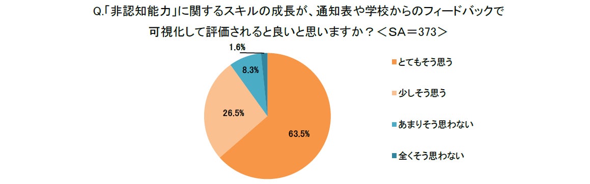 こうした関心の高さを背景に、「『非認知能力』に関するスキルの成長が通知表や学校からのフィードバックで可視化して評価されると良いと思いますか?<SA>」という質問には、約9割の親が「そう思う」と回答しました。