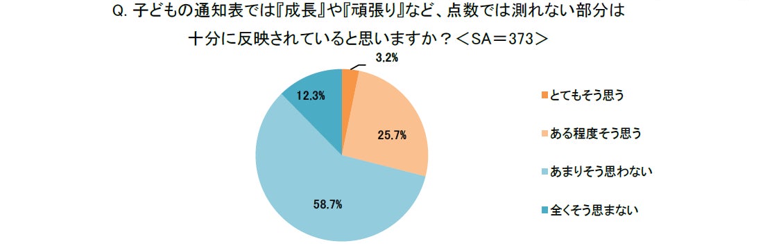2.7割以上の親が通知表に“成長”や“頑張り”など点数では測れない部分が十分に反映されていないと回答!