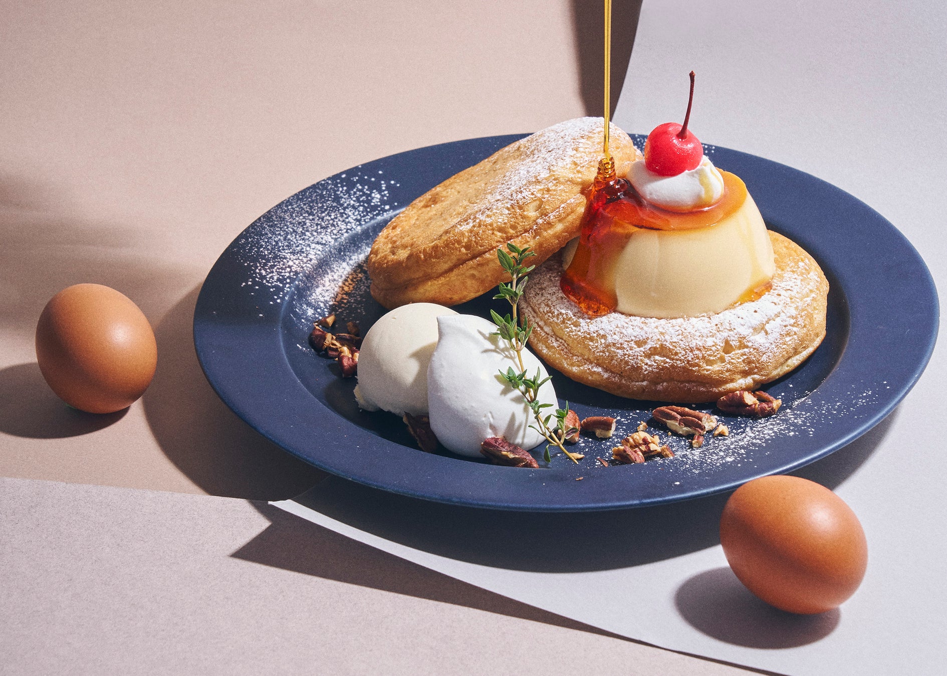 ■ 淡路島・北坂養鶏場“初産たまご”プリンのパンケーキ(税込 1,870円)