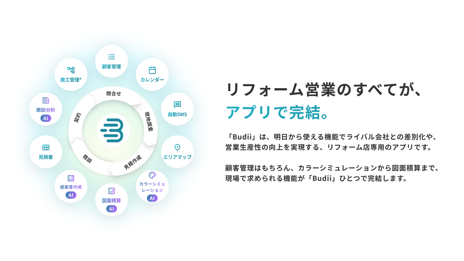 ・リフォーム会社向け営業支援アプリ「Budii」(https://budii.jp/)