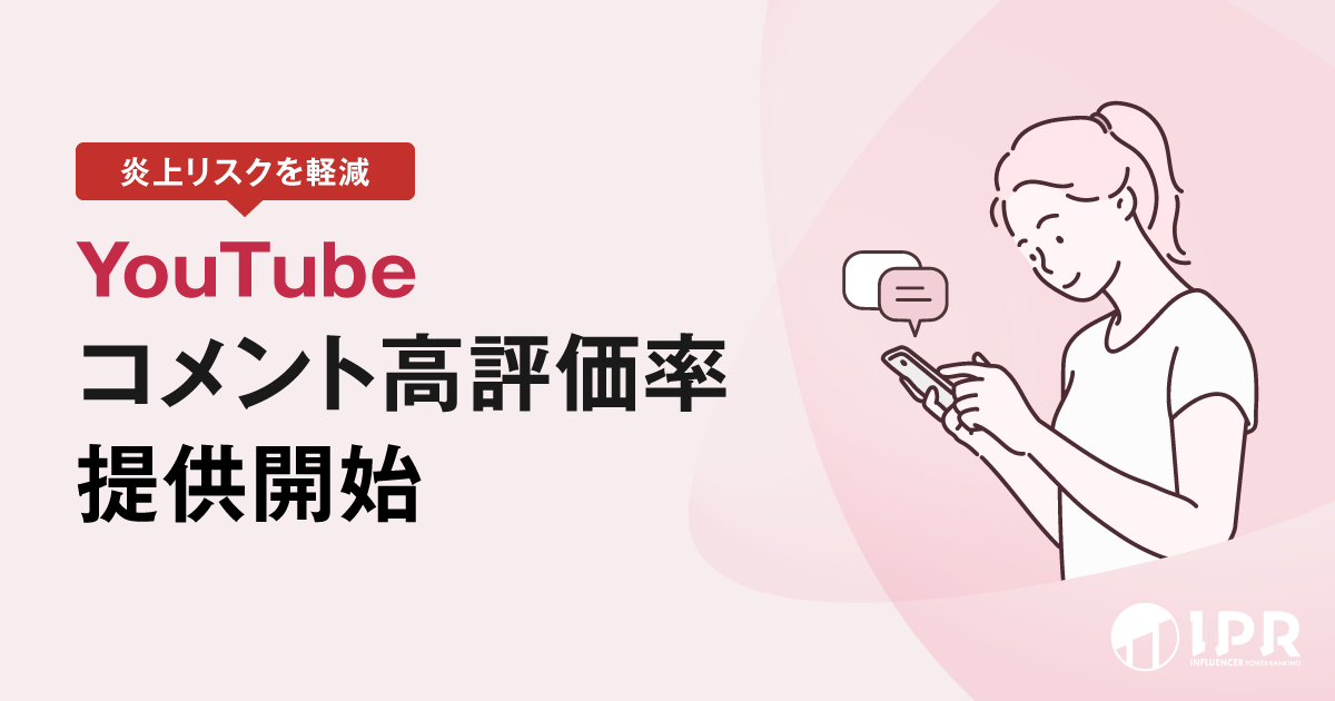 インフルエンサーマーケティングの炎上リスクを軽減。分析ツール「IPR」にて、YouTubeクリエイターの「コメント高評価率」が表示可能に。キャスティングやリスク管理での活用を推奨。