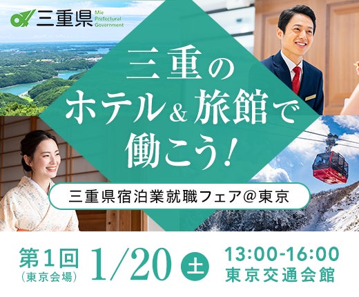 宿泊業界専門の就職・転職支援サービス「おもてなしHR」を運営する株式会社ネクストビート(本社:東京都渋谷区、代表取締役:三原誠司)は、三重県から「宿泊事業者向け人材確保支援業務」を受託し、業務の一環として「三重のホテル&旅館で働こう!三重県宿泊業就職フェア@東京」を2024年1月20日(土)に東京交通会館にて開催いたします。本イベントを通して、観光需要が回復する宿泊業界における人材不足の課題解決を目指します。