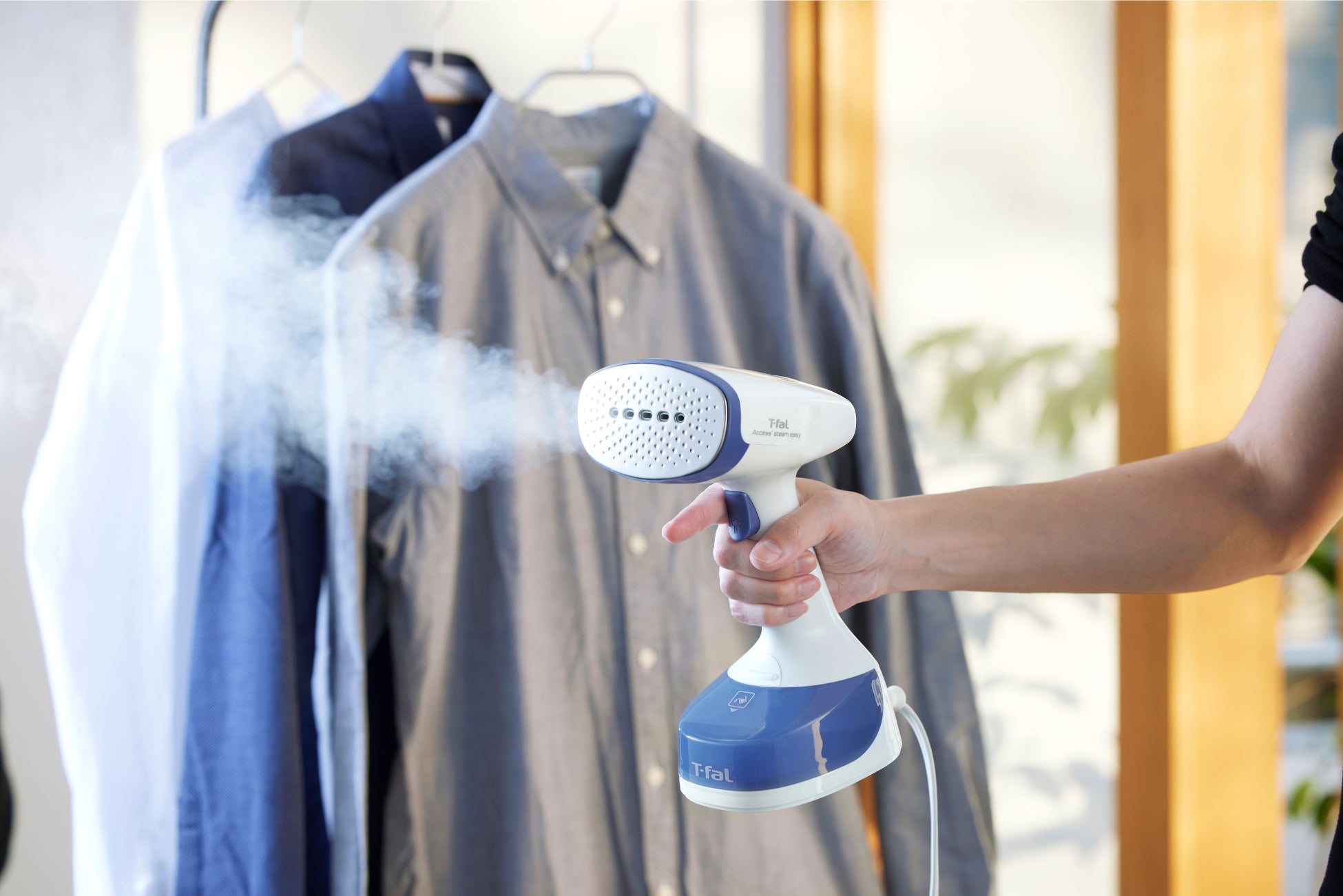 詳細は衣類スチーマーのWEBサイトを参照。( https://www.t-fal.co.jp/sp/products/iron/garment-steamer/ ) 3月公開予定。