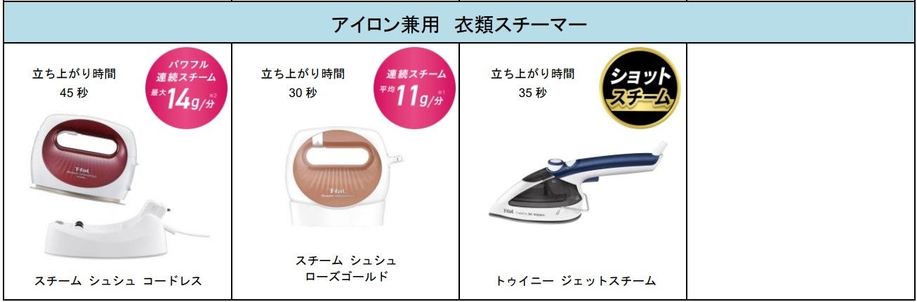 ティファール 衣類スチーマー ラインナップ