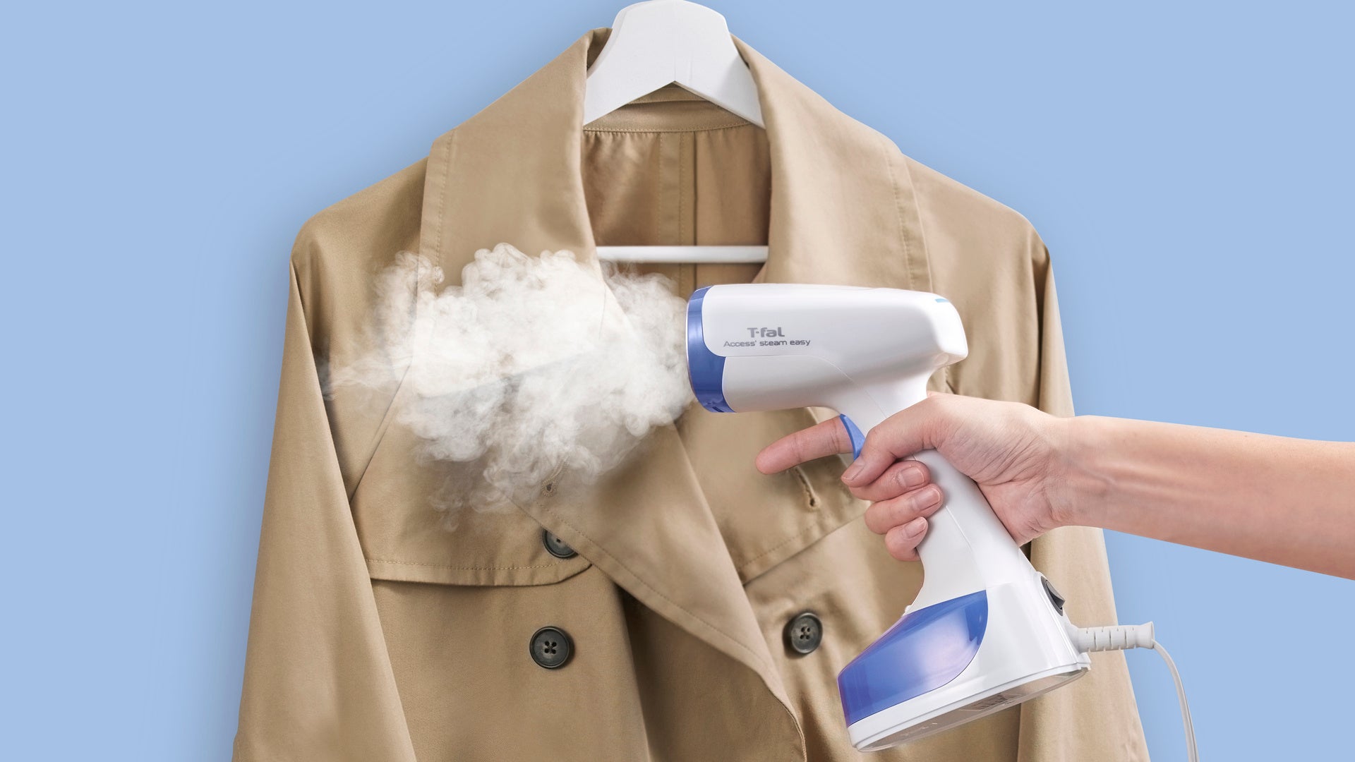 詳細は衣類スチーマーのWEBサイトを参照。( https://www.t-fal.co.jp/sp/products/iron/garment-steamer/ )3月公開予定。