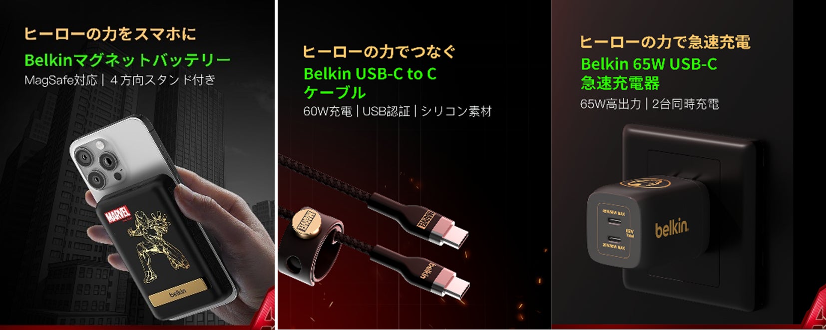 マーベル限定モデル:https://www.belkin.com/jp/clp-disneys-marvel-page.html