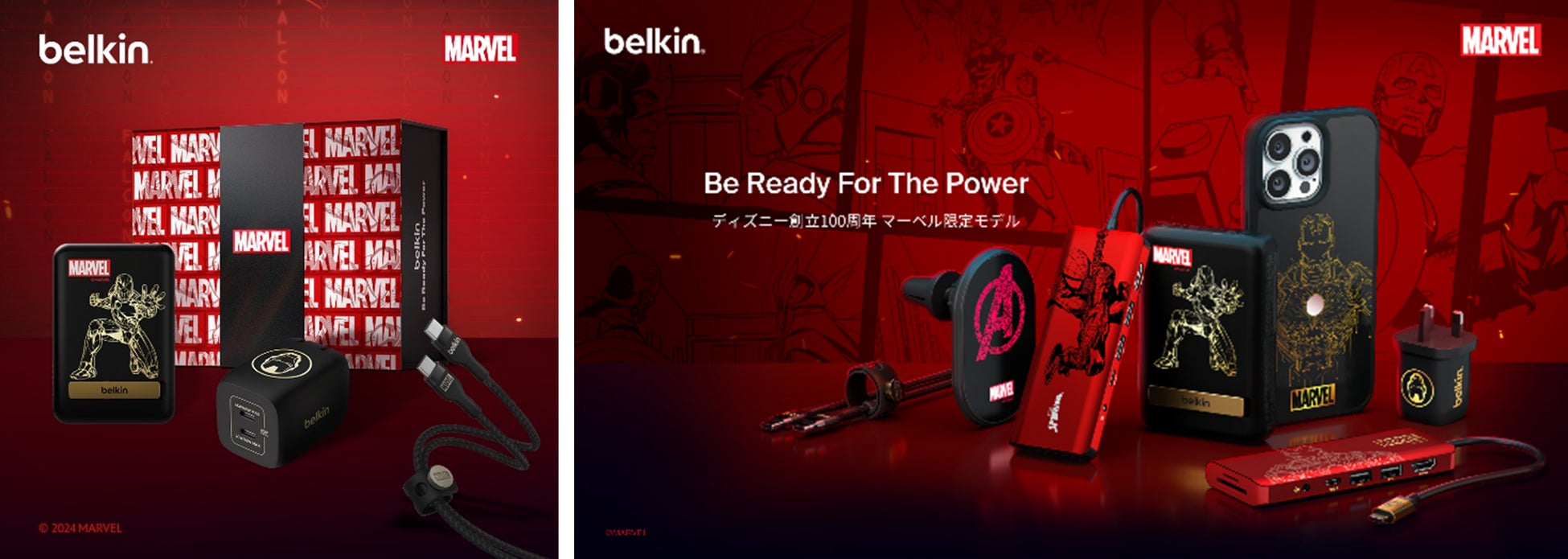 「Belkin」では、Disney100、MARVEL、PIXARを含む5つのテーマの全31種類のラインアップで初のディズニー製品を展開しています。テーマのうちの一つであるマーベルシリーズは、マーベルに登場するスーパーヒーローたちの世界観を日常生活の中で味わうことができる製品となっています。