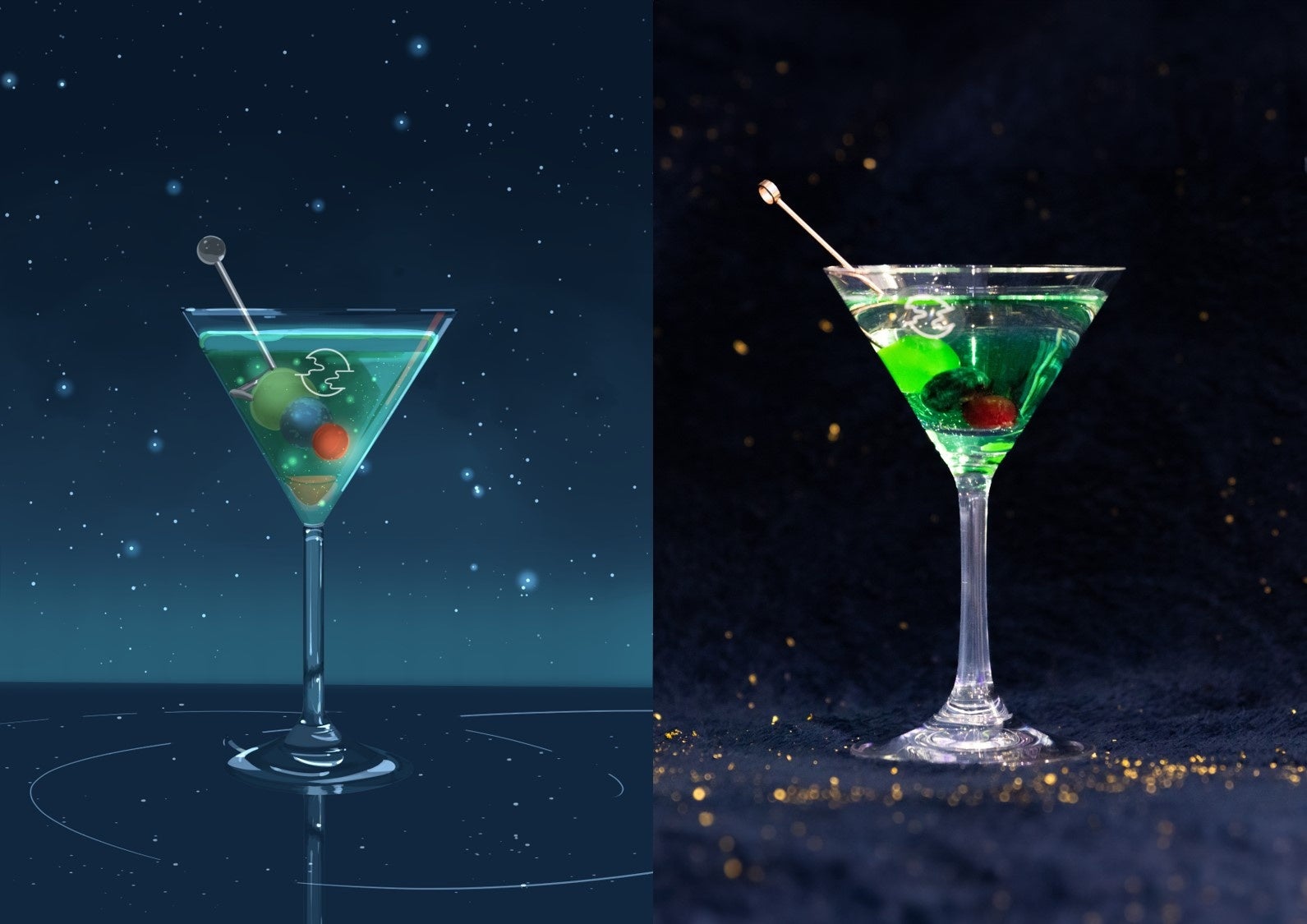 夏の星座ベガ・アルタイル。デネブを結んだ夏の大三角形の輝く夜空をカクテルに。スティック