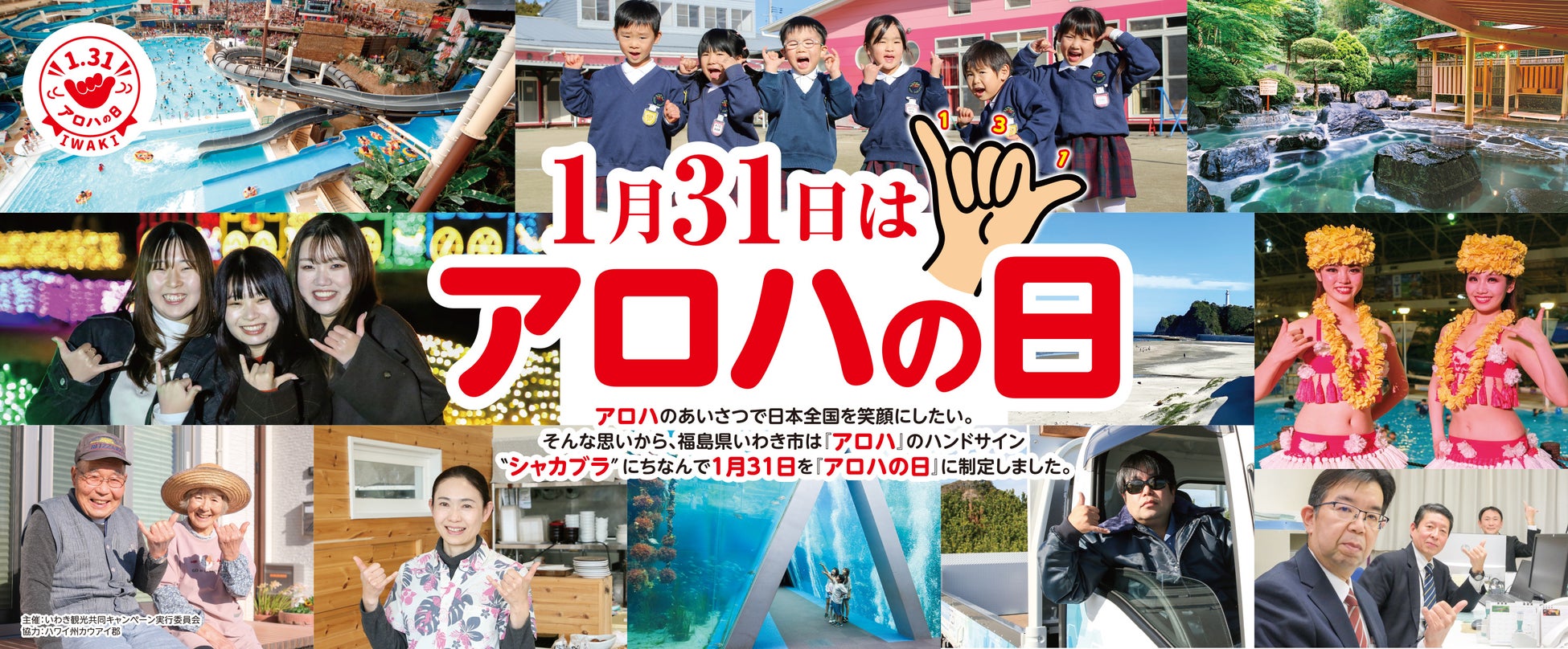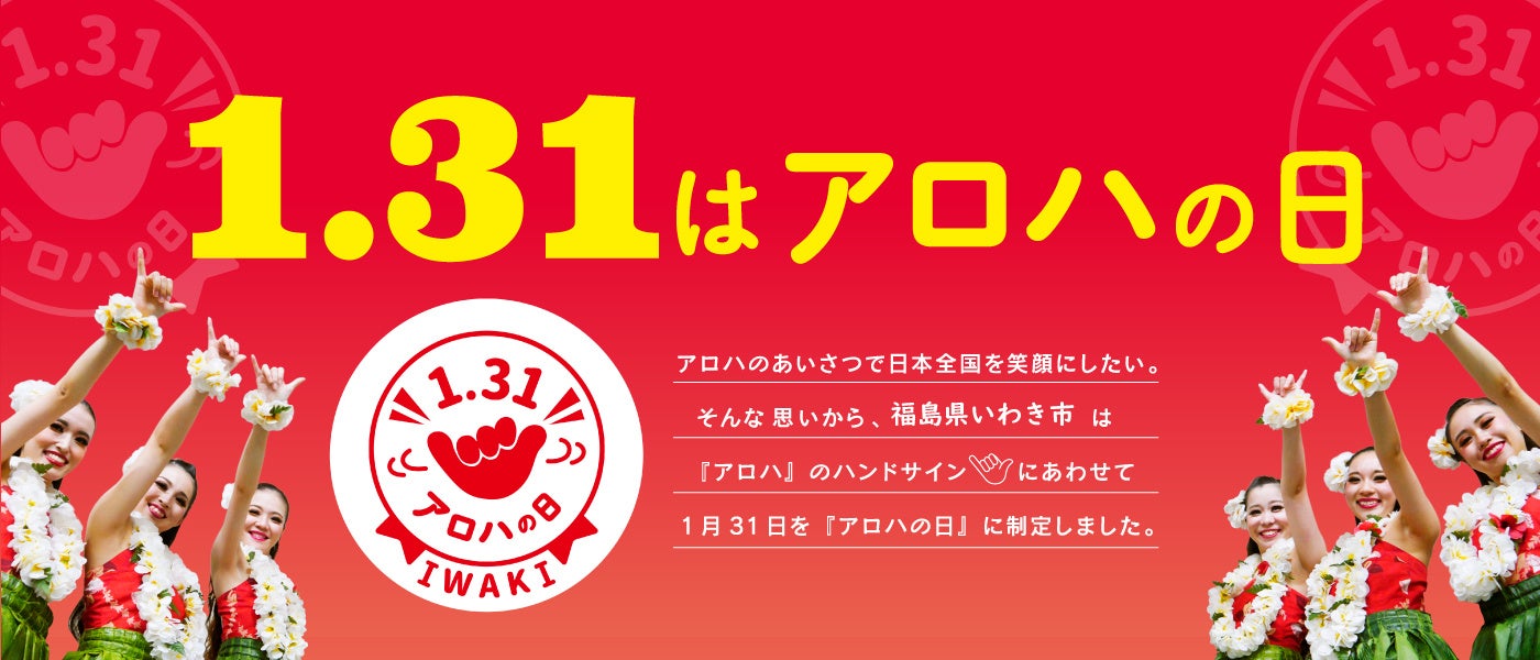 そこで、日本でも、「アロハ」の言葉の意味の深さを多くの方に知っていただき、「アロハ」の挨拶をすることで、いわき市、福島県、そして、日本全国を笑顔にしたい、という思いで記念日として申請し、認定されました。なお、1月31日を「アロハの日」に設定した理由は、アロハの挨拶をする際に用いるハンドサイン“シャカブラー”の手の形、指の本数に由来したものです。