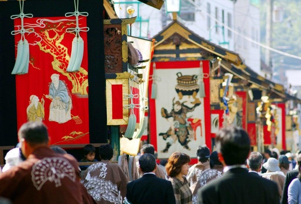 秋祭り当日は、9台の鉾山の巡行が行なわれ、迫力のあるパフォーマンスと勇壮たる巡行は一見の価値があります。