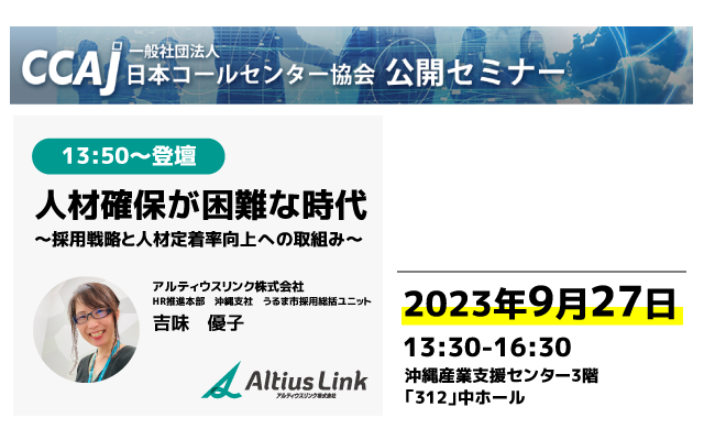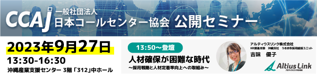 9月27日登壇「採用困難時代の採用戦略と人材定着率向上の実録」発表 ~AISASモデルを取入れた採用成功法とは CCAJコンタクトセンター・セミナー2023 in 沖縄