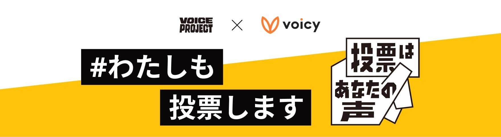 この現状に向けて、なにかできることはないかと活動するVOICE PROJECTと、声のチカラでその人自身やその人のスタンスを届けてきたVoicyが連携をすることで、いっしょに「投票」を呼びかけることができると考え、今回連携した取り組みを行うことにしました。「投票」に行くことで、わたしたちは自然と「政治」のことを意識するようになる。それが民主主義の土台となり、政治やわたしたちの生活に関わる重要なことを、もっと気軽に話し合える世の中になってほしい。そんな願いを込めた取り組みです。