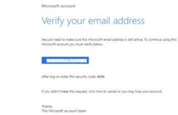 このリンクはMicrosoftとは無関係です。受信者にメールアドレスの認証を要求してくるこのメールは、詐欺行為につながる可能性があります。