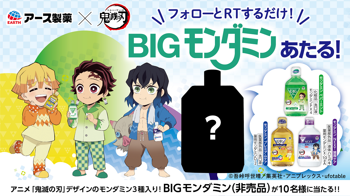 アース製薬の「モンダミン」と「バスロマン」のパッケージにアニメ「鬼滅の刃」の新しく描き下ろしたキャラクターが登場!コラボ商品を数量限定発売!Twitterキャンペーンも実施!