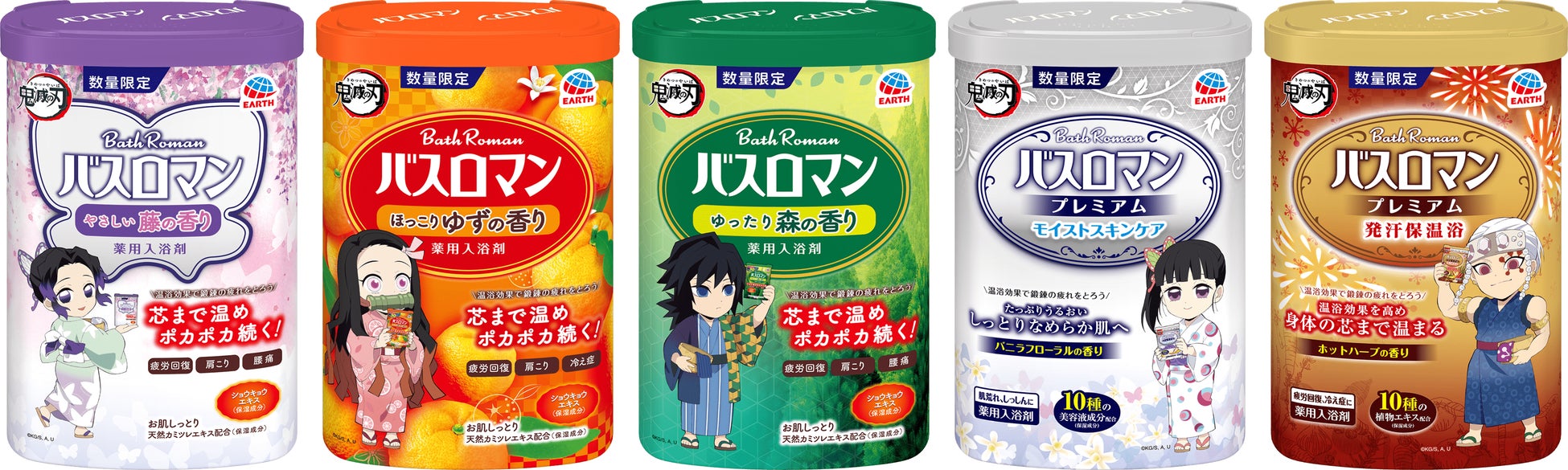 モンダミンブランドから『モンダミン ペパーミント』、『モンダミン プレミアムケア』、『モンダミンNEXT 歯周ケア』の3種類、バスロマンブランドから『バスロマン やさしい藤の香り』、『バスロマン ほっこりゆずの香り』、『バスロマン ゆったり森の香り』、『バスロマンプレミアム モイストスキンケア』、『バスロマンプレミアム 発汗保温浴』の5種類でアニメ「鬼滅の刃」のキャラクターたちがパッケージに登場します。