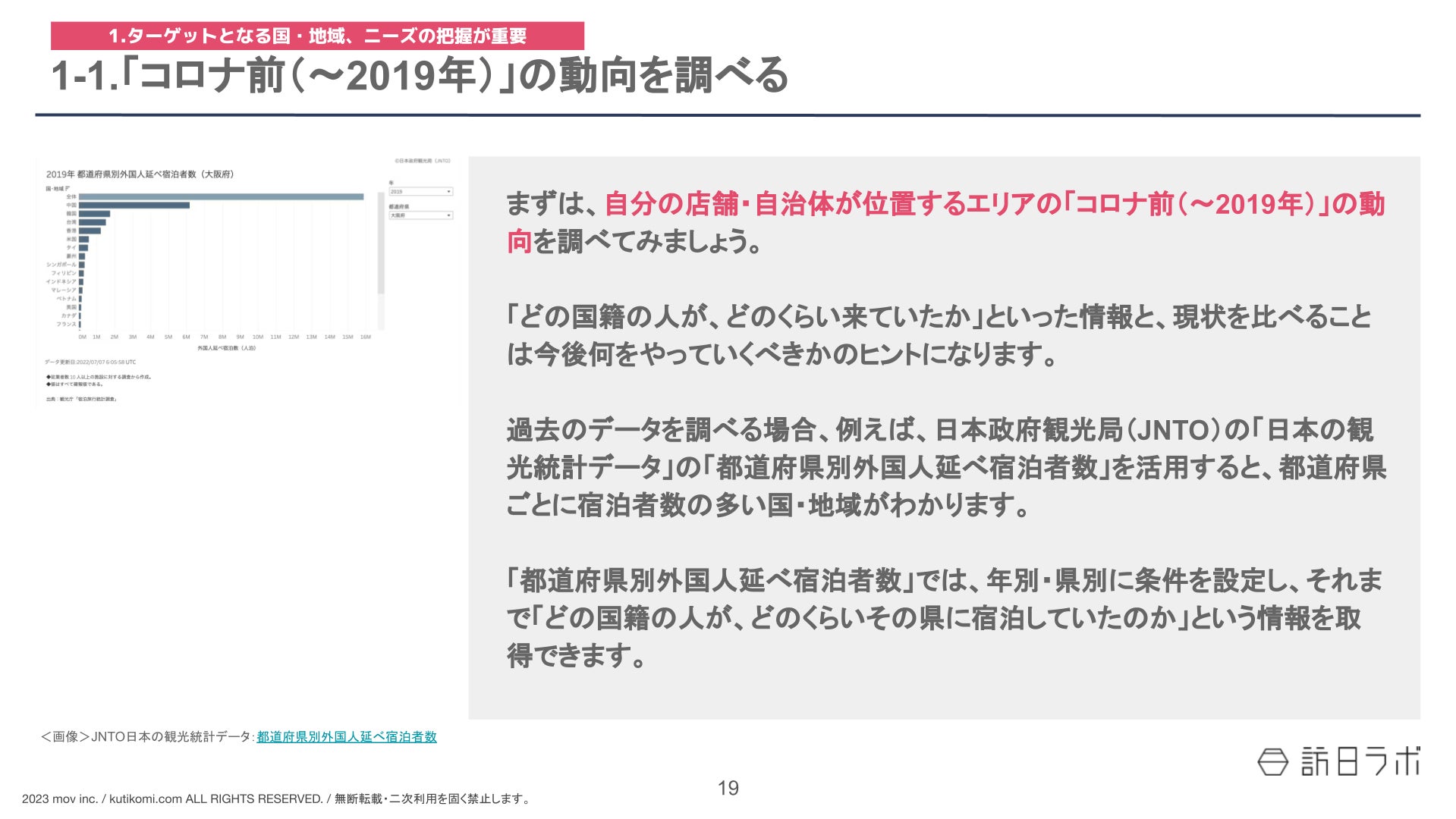 はじめに行う『ターゲットとなる国・地域、ニーズの把握』では、コロナ前の動向がヒントになります。