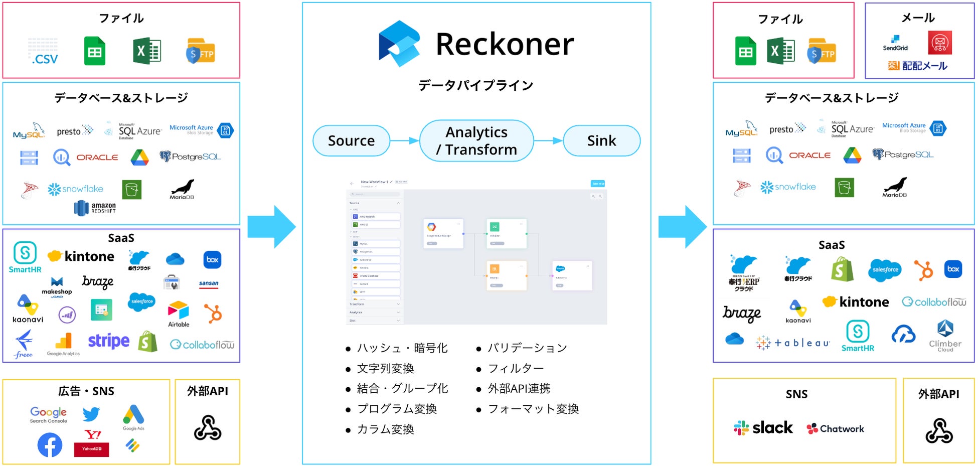 「Reckoner」は、データの集約・加工・連携をノーコードで誰でも簡単に実行できるクラウドサービスです。