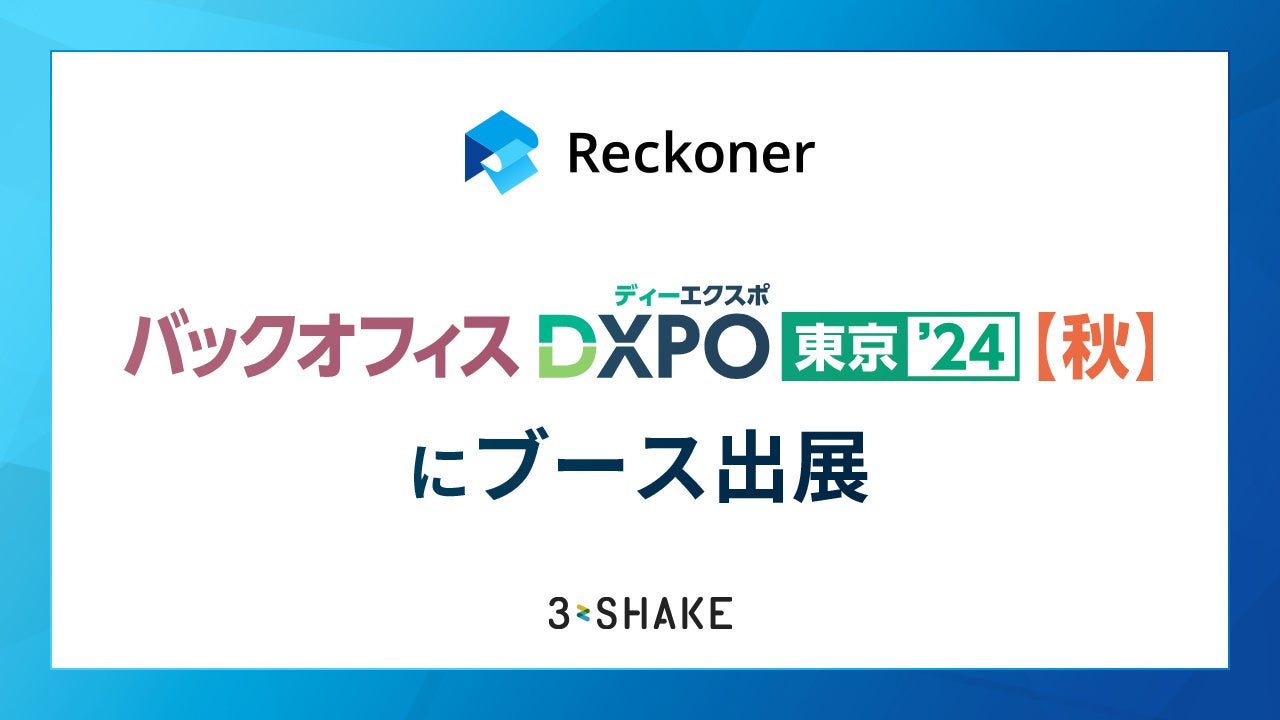 株式会社スリーシェイク(本社:東京都新宿区、代表取締役社長:吉田 拓真、以下スリーシェイク)が提供する、クラウド型データ連携ツール「Reckoner(レコナー)」は、2024年11月19日(火)〜20日(水)に東京ビッグサイトで開催される「第1回 バックオフィスDXPO 東京'24(秋)」にブース出展することをお知らせします。