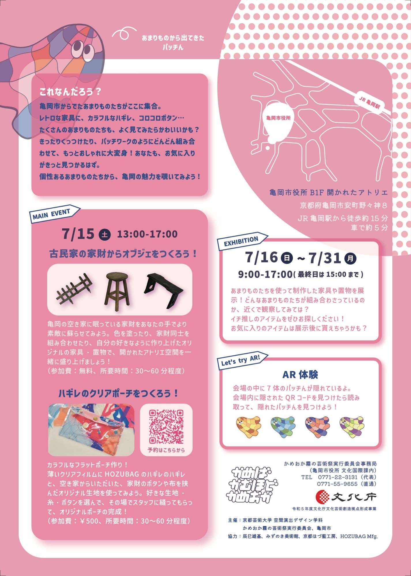 亀岡市役所「開かれたアトリエ」で京都芸術大学の学生が亀岡市の未来を担う若者に向けたイベント「かめばかむほどかめおか」を7/15(土)に開催!亀岡市の“あまりもの”を使ったワークショップを企画。