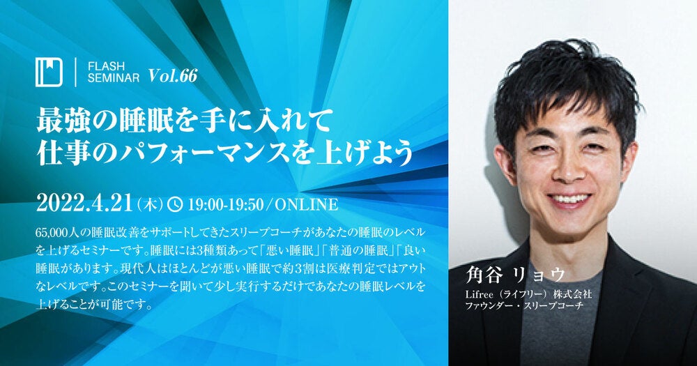 2022/4/21(木)FlashセミナーVol.66【無料】最強の睡眠を手に入れて仕事のパフォーマンスを上げよう