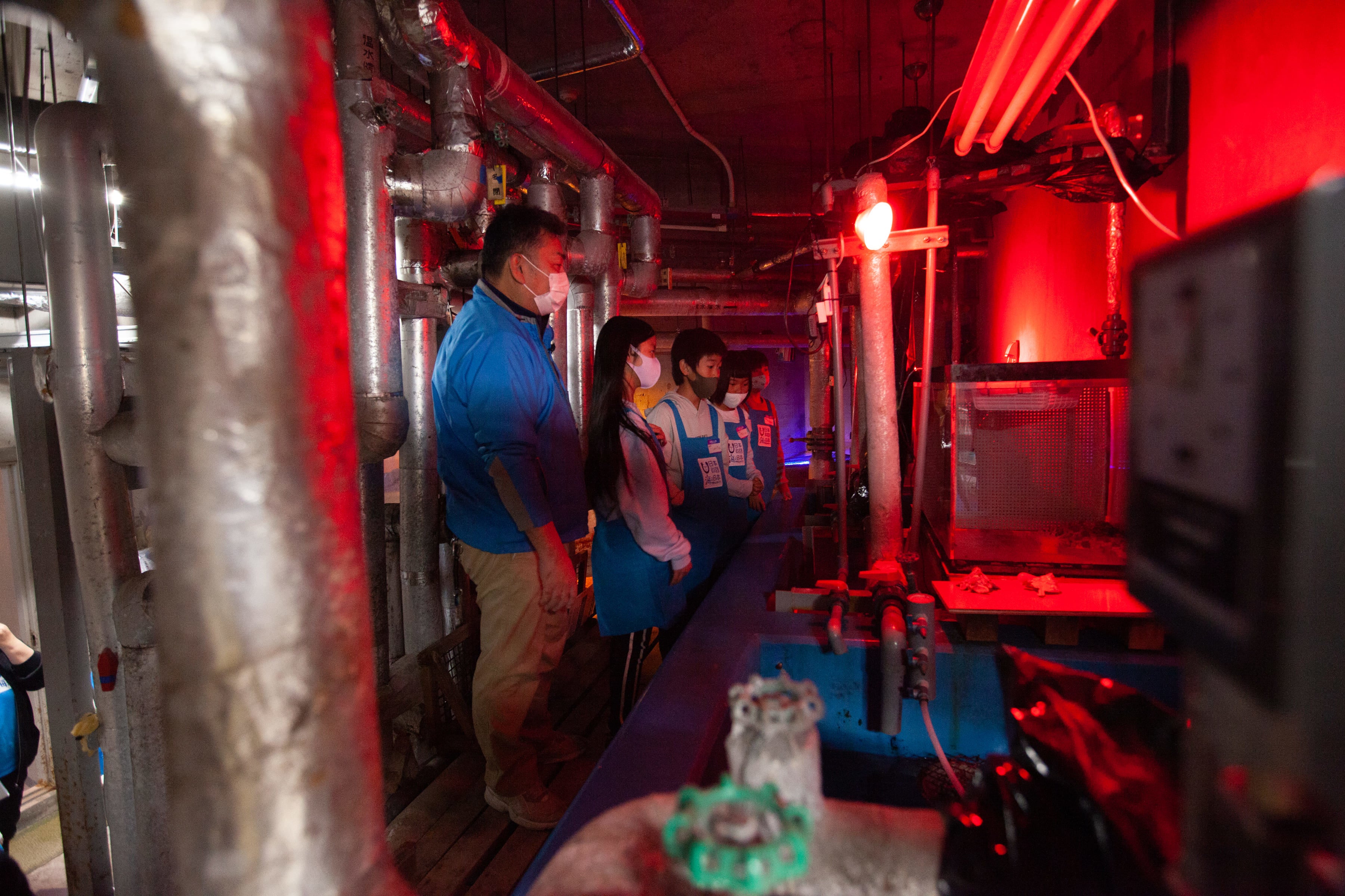 深海について学んだ後はバックヤードに移動し、水槽の裏側を見学しました。「予備水槽」と呼ばれる水槽には、駿河湾で採集した深海魚が。迎え入れた生体を慣らしたり、餌付けをしたりする役割を担っている予備水槽。普段は見ることのできない飼育員さんのお仕事を垣間見ることができました。