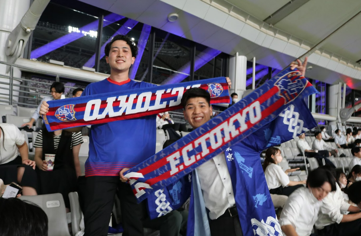 社内メンバーのコミュニケーション増加を目的として、全社員が集まる様々なイベントを開催しています。そのコンテンツの一貫として、当社のスポンサー先である J1 リーグの FC 東京の試合観戦を行っております。