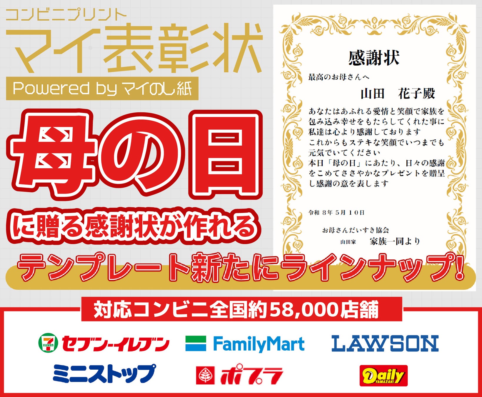 『マイ表彰状』に、母の日向け定型文テンプレートを追加しました。