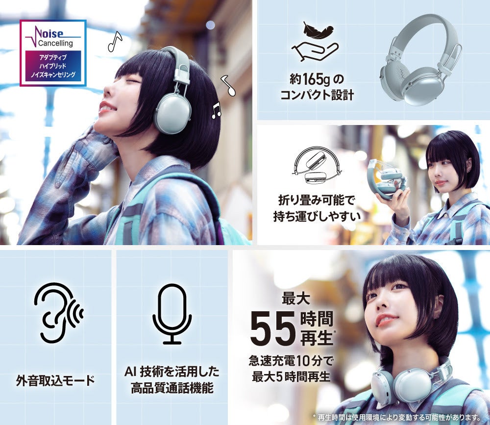 レトロなデザインに最新の機能性を盛り込んだ点を評価され、VGP特別賞(企画賞)を受賞したモデル。約165gと軽量でミニマルサイズのワイヤレスヘッドホンでありながら、高性能ノイズキャンセリング機能を搭載。頭部をやさしく包み込む快適な装着感と、AVIOT独自のチューニングによるクリアでバランスの取れた音質、最大55時間以上の連続再生やマルチポイント接続にも対応し、コンパクトなボディにパワフルでリアリティあふれるサウンドを凝縮した一台です。