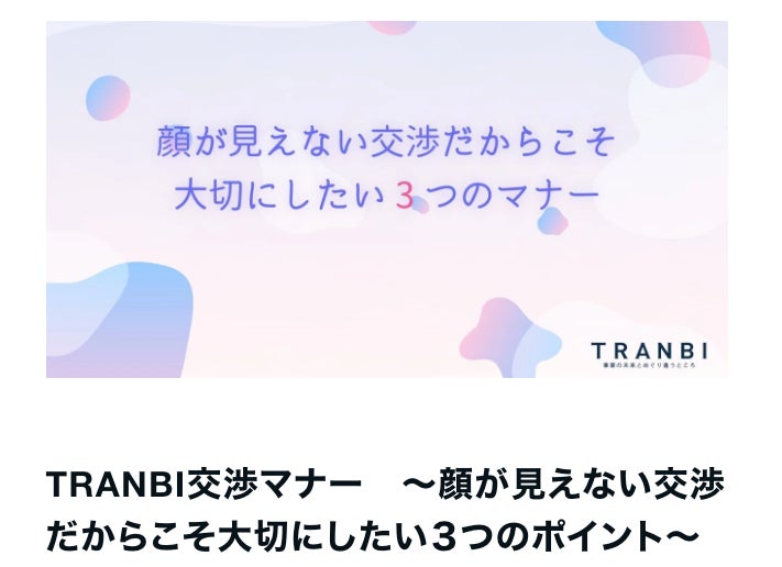 「TRANBI交渉マナー 〜顔が見えない交渉だからこそ大切にしたい3つのポイント〜」