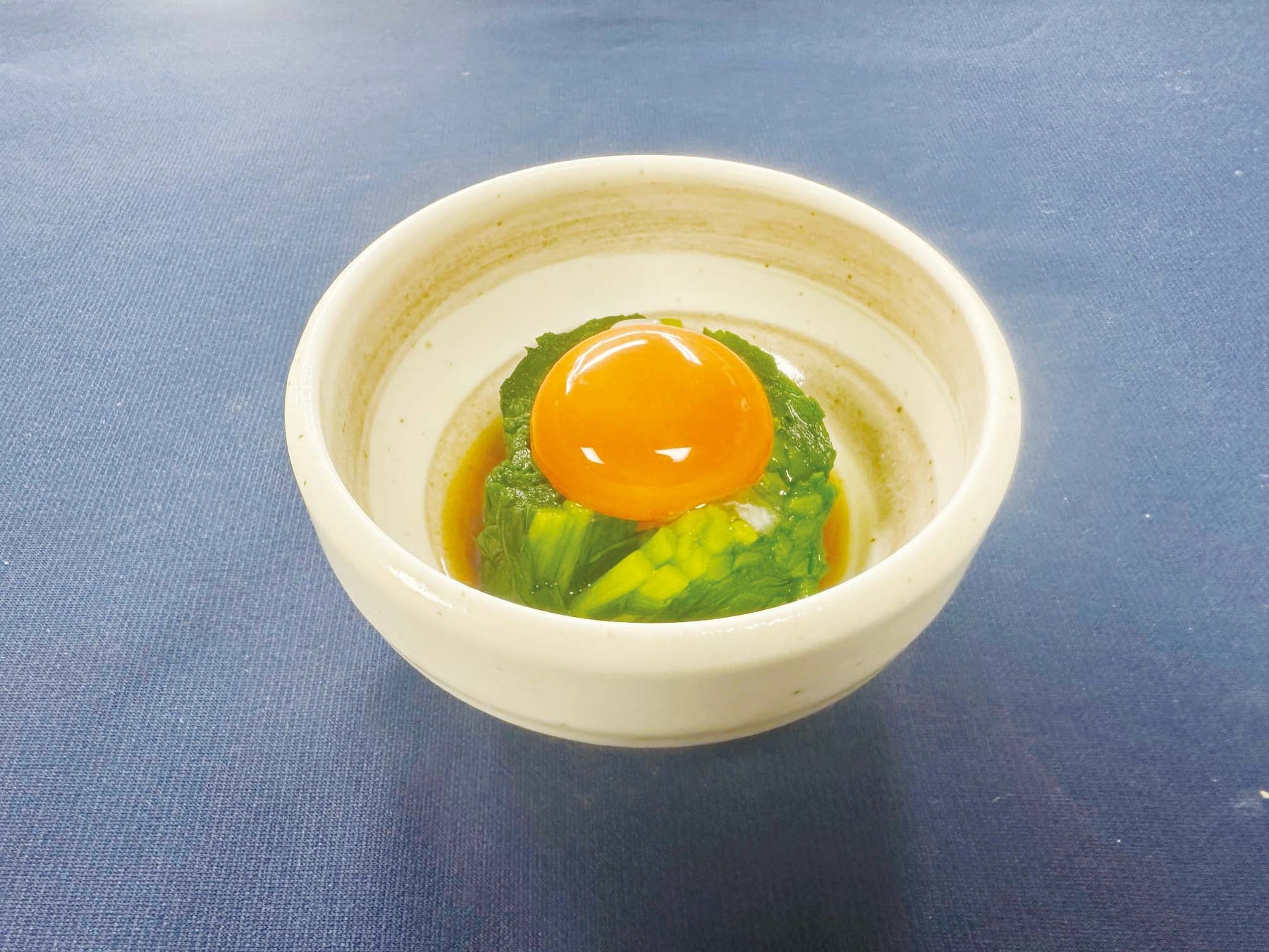 香り豊かなにらを卵黄と絡めてお楽しみください。お酒のおつま