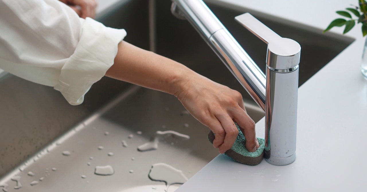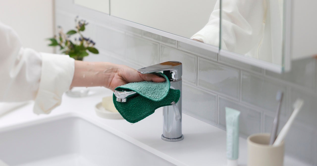 特長:手のひらやゆび先に沿って、蛇口のカーブは手で包み込むように、細かい溝はゆび先を使うようにして、水周りの汚れをすっきり落とせます。