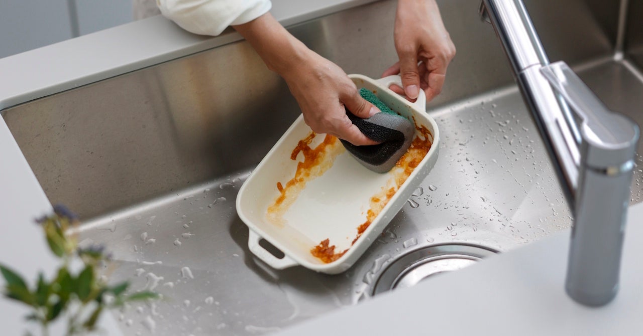 特長:「ハード加工面」と「脱膜ウレタン」の使い分けで、食器洗いはこれ1つで完結。洗剤をつけても泡持ちよく使えます。