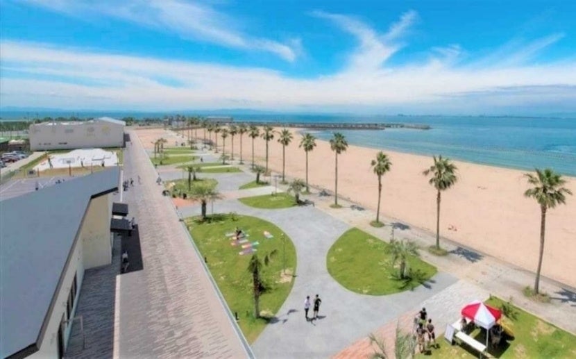 関西の玄関口である関西国際空港の対岸に位置する、関西最大級の交流・レクリエーションスポットです。高さ15.5mの高所アスレチックをはじめ、スケボーパーク・サッカーグラウンドなどのスポーツ施設を備えた『アクティビティエリア』や、ビーチをイメージしたBBQ場、テラス席の飲食店が並ぶ 『コミュニティエリア』、岡田浦漁港とのタイアップにより、泉州の自然の恵みをたくさん受けた、地元ならではの食材が楽しめる『マルシェエリア』、キーカラーが象徴的なヴィラが並び、キッチン、リビング、ジャグジー、BBQダイニングが用意されたお部屋でプライベートな時間を楽しめる『グランピングエリア』の4つのエリアに分かれており、一日を通してスポーツ・食・レジャーを丸ごとお楽しみいただけます。