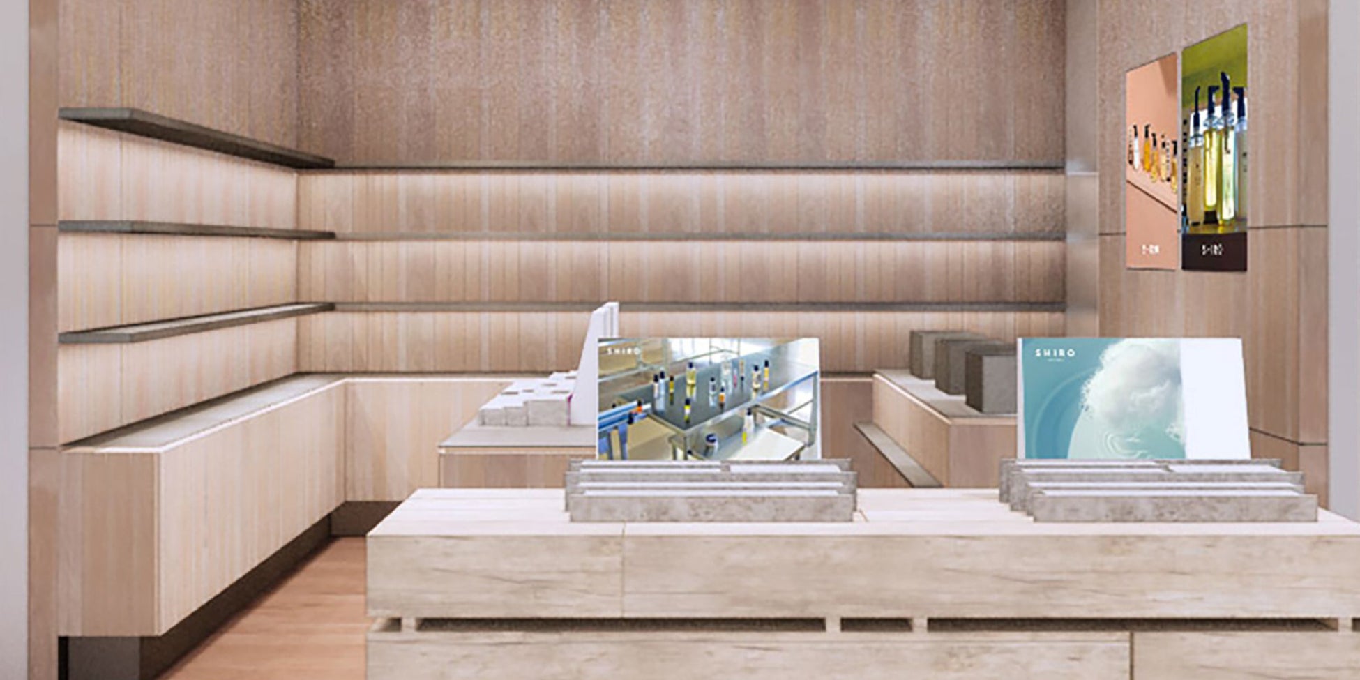 「SHIRO 阪急うめだ店」は2025年4月16日(水)、同フロアにて移転リニューアルオープンいたします。SHIROは極力バージン材を使わず、今ある資源の価値を見つめ直しながらお店づくりを行っています。SHIROのものづくりでは、つくるものを決めてから、植物などの素材を探すことはしません。素材に直接触れながら特徴を知り、自然の恵みを余すことなく使うことができる、魅力を最大限引き出した製品をつくっています。それはお店づくりにおいても同じで、デザインのみを重視して設計を行い、建材を探しに行くということはしません。これまでも、SHIROが出会ってきた素材や、新たにフィールドワークをすることで見つけたものを活用した設計デザインをしてきました。