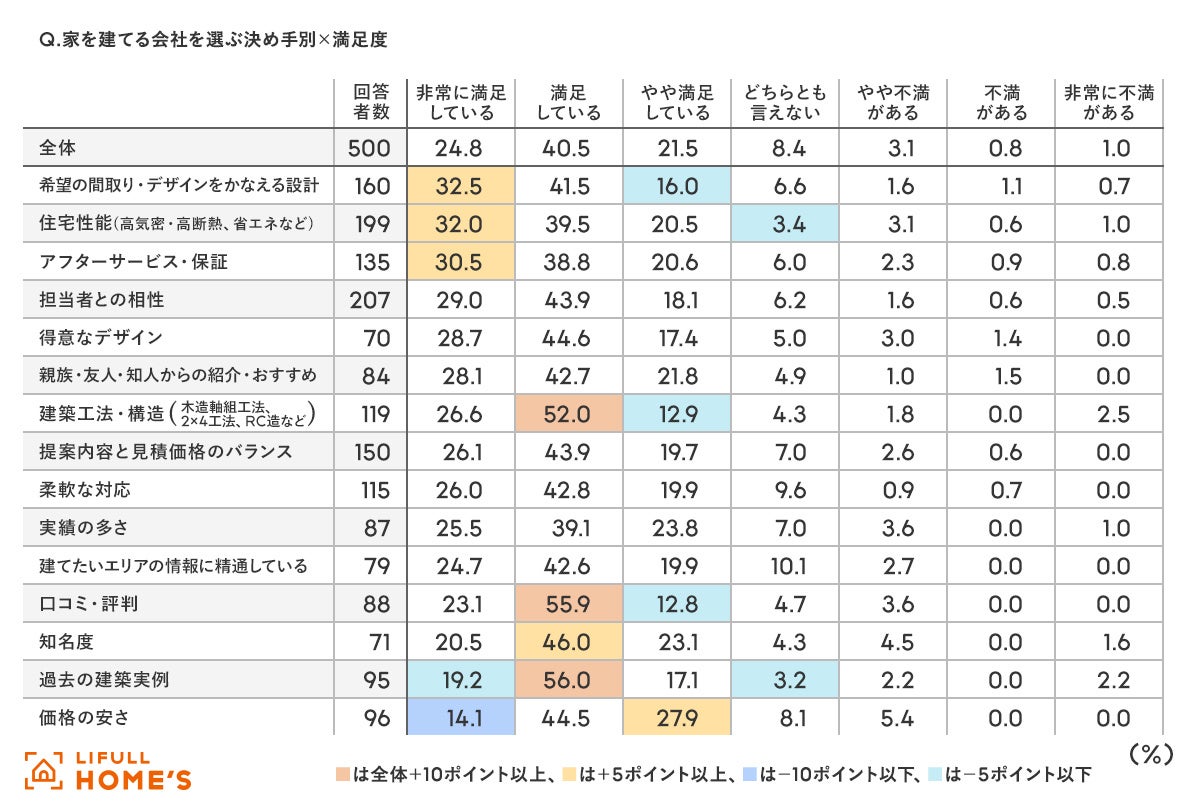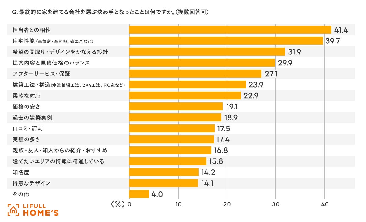 - 性能重視の傾向。会社選びの決め手の第1位は「担当者との相性」、「住宅性能」が第2位に