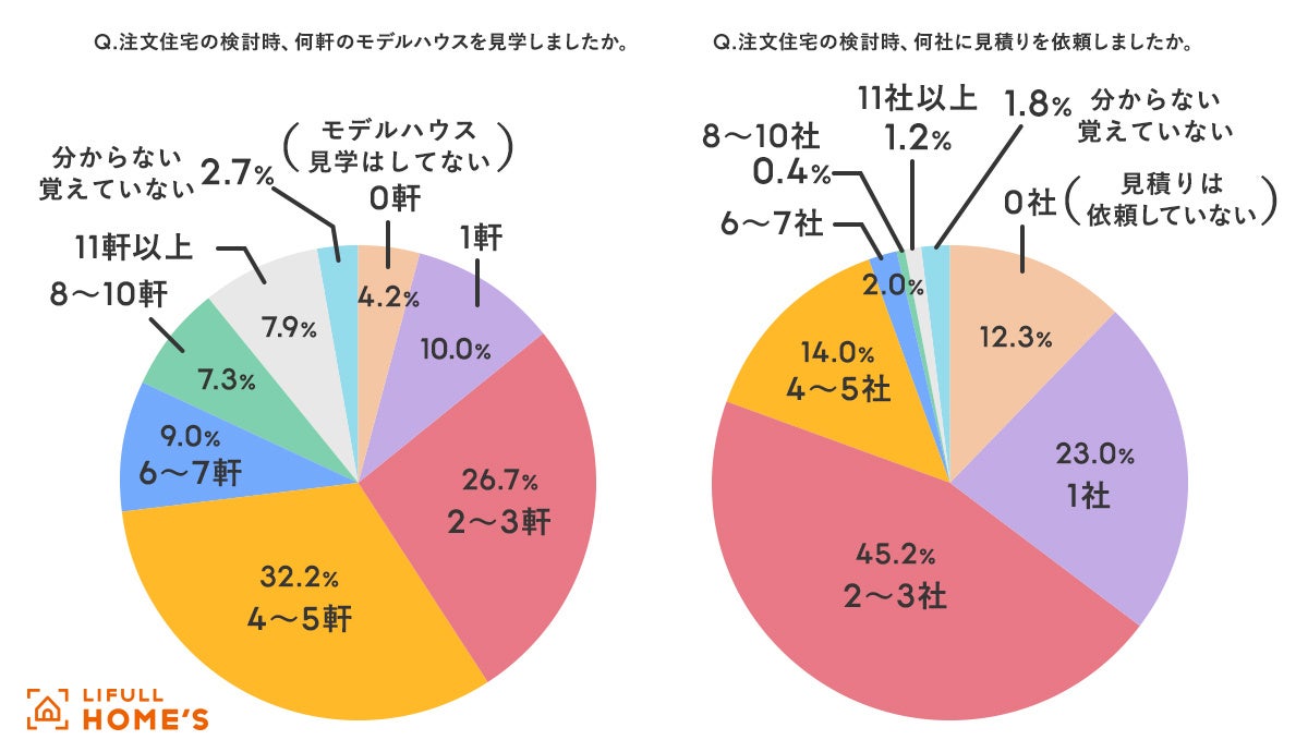 - 比較で会社を見極める!モデルハウスの見学数は「4~5軒」、見積もり依頼は「2~3社」が最多