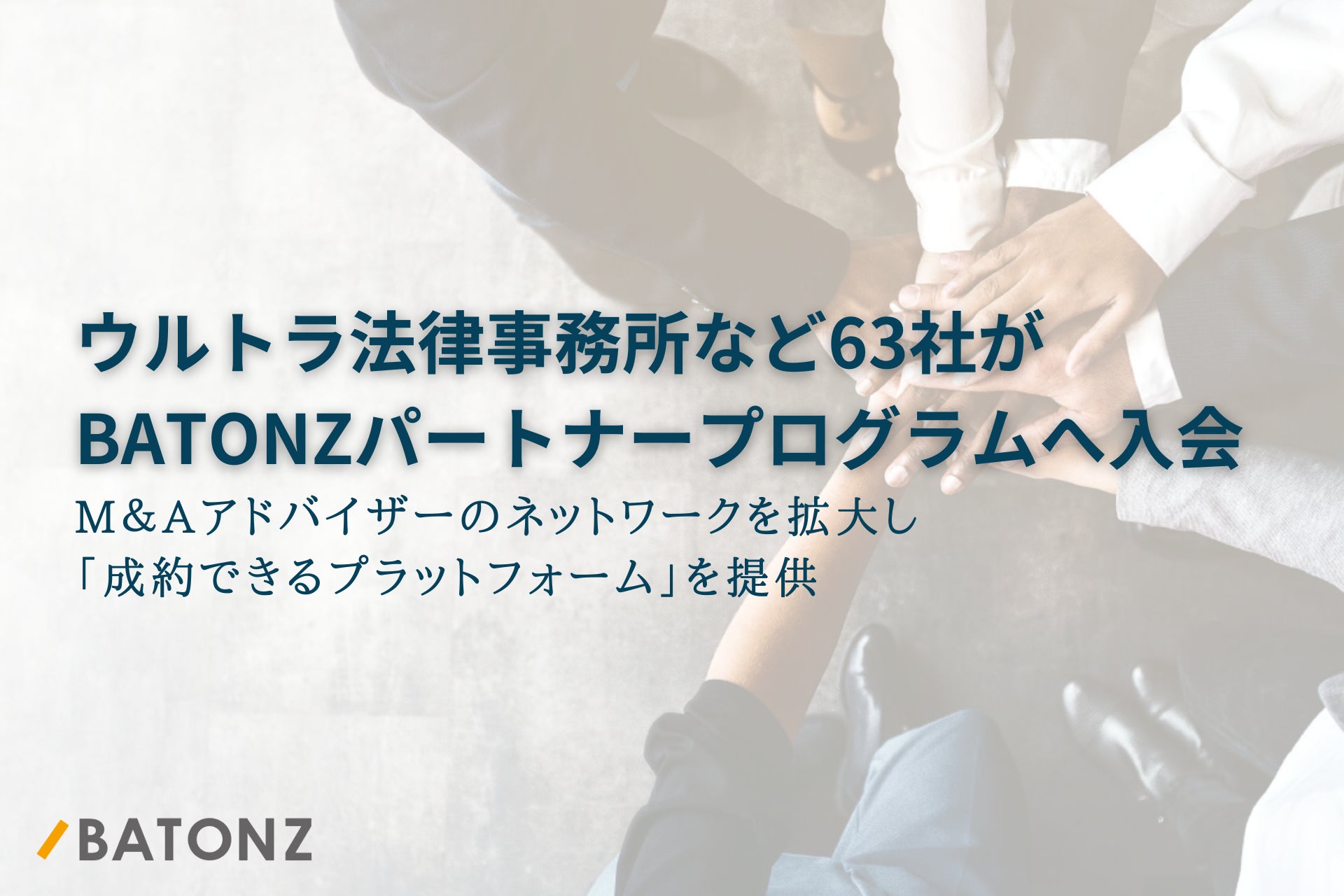 ウルトラ法律事務所など63社がBATONZ パートナープログラムへ入会