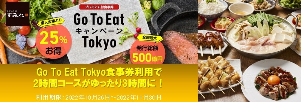 - GoTo Eat Tokyoお食事券利用で、通常2時間コースがゆったり3時間に!(2022年11月30日まで)