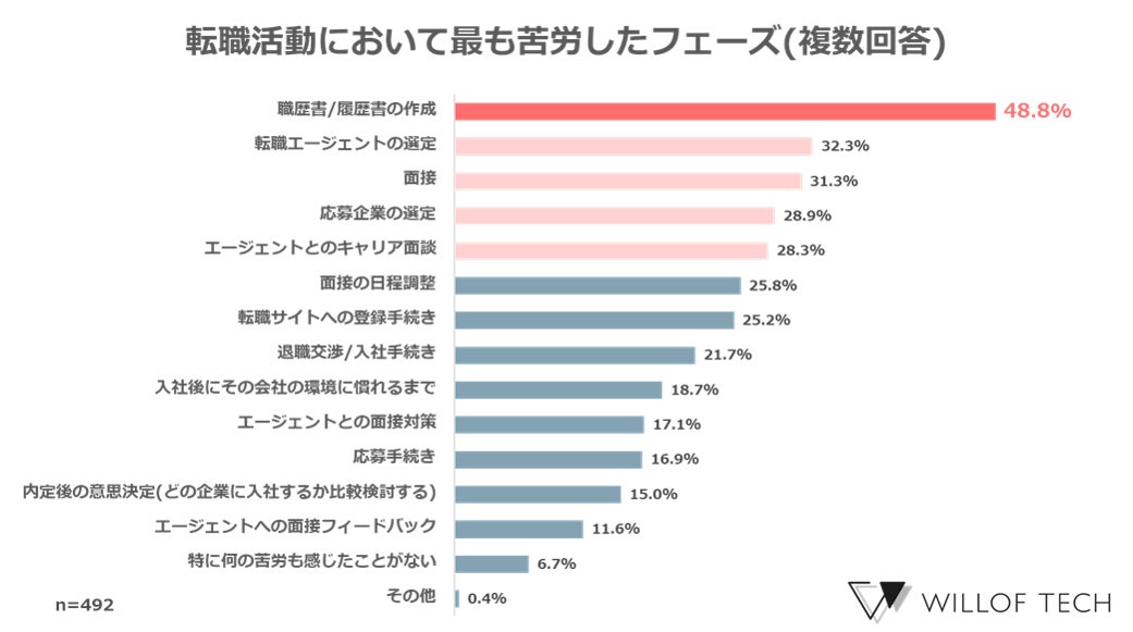 1.転職活動において最も苦労したフェーズは「経歴書・履歴書の作成」