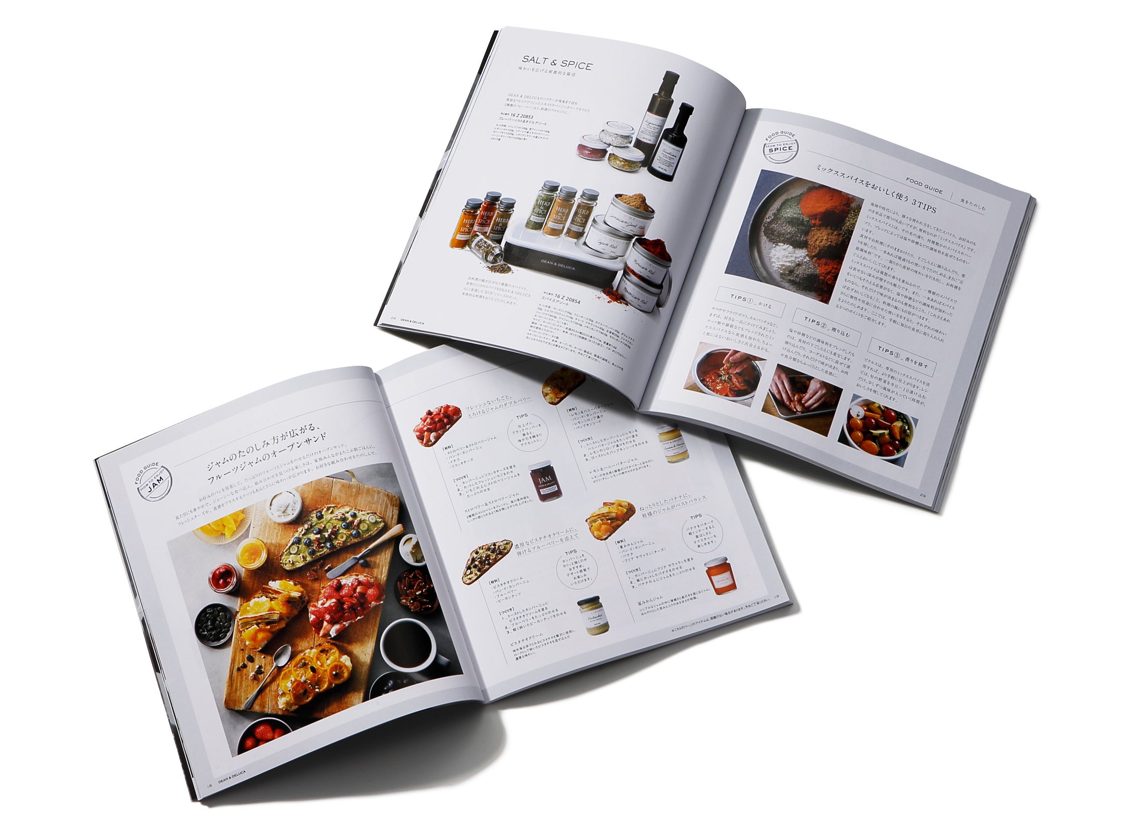 ブックタイプには、カタログとしての要素だけでなく、コラムやレシピなどの読み物も充実。DEAN & DELUCAの世界観をたっぷり味わえます。FOOD TRAVELと題し、多彩な5つの旅にそって、食のよろこびに出会うコンテンツです。