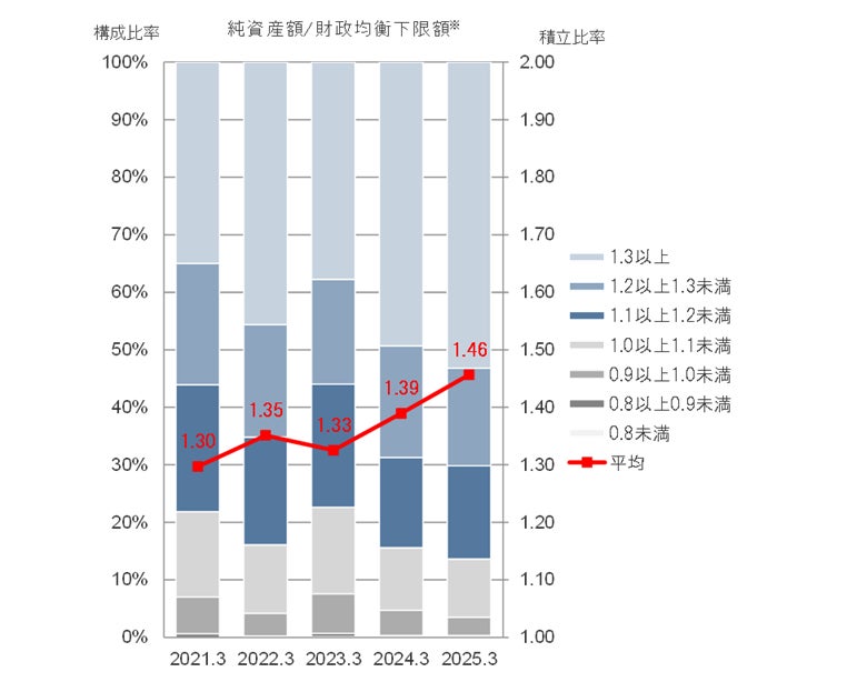 <継続基準の財政検証結果の時系列推移(「純資産額/財政均衡下限額」)>