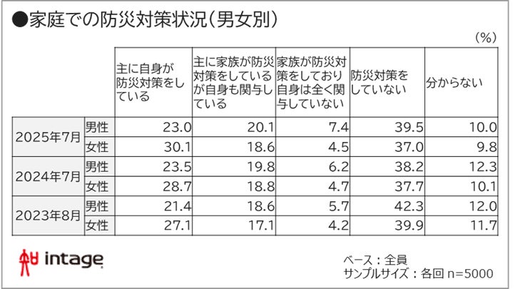 株式会社インテージ(本社:東京都千代田区、取締役社長:檜垣 歩、以下インテージ)は、全国の15歳から79歳の男女(5,000人)を対象に実施した「防災意識」に関する調査結果を公開します。