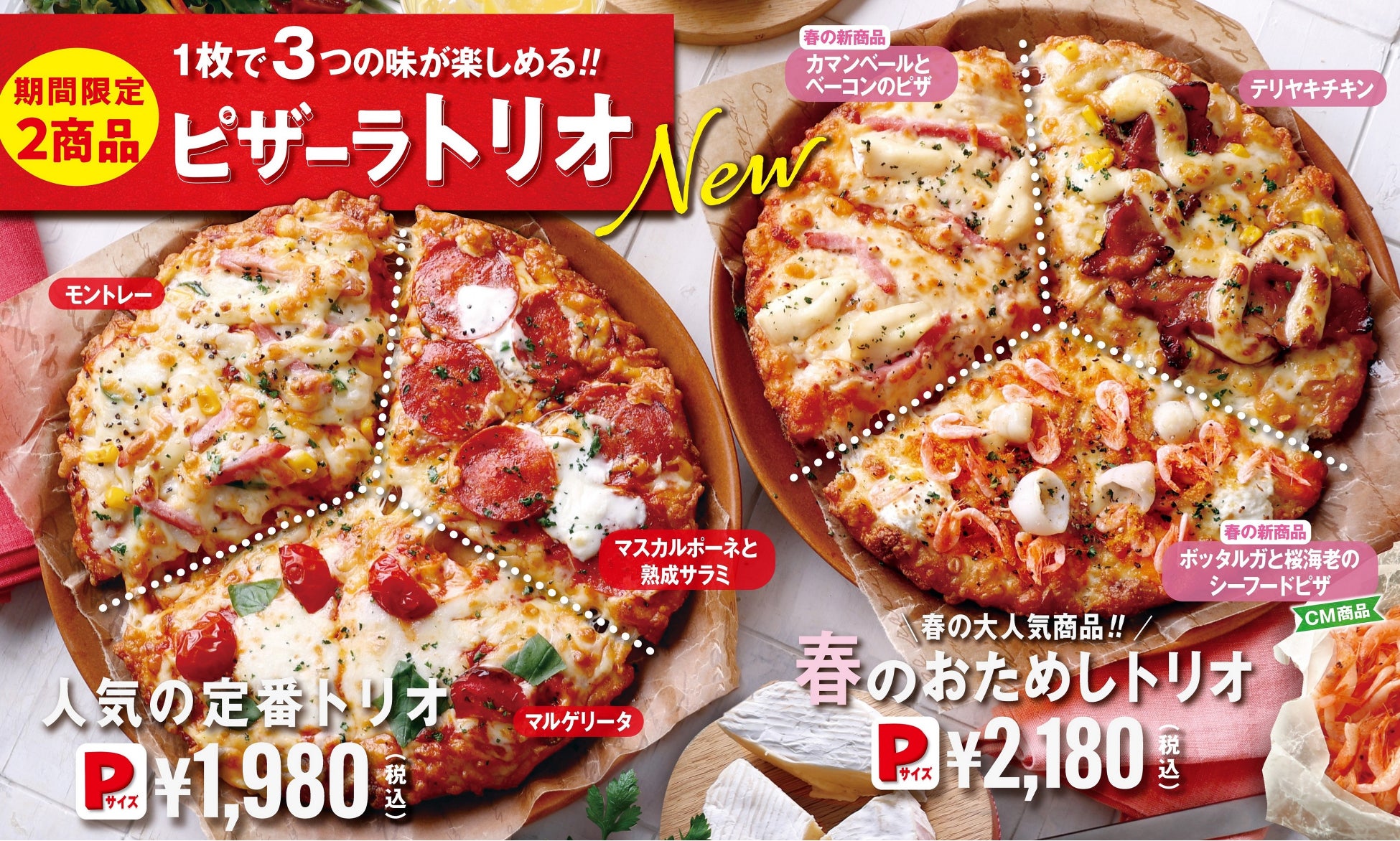 「春のおためしトリオ」「人気の定番トリオ」新登場!! パーソナルな食べごろサイズ! 1枚で3つの味が楽しめる!!