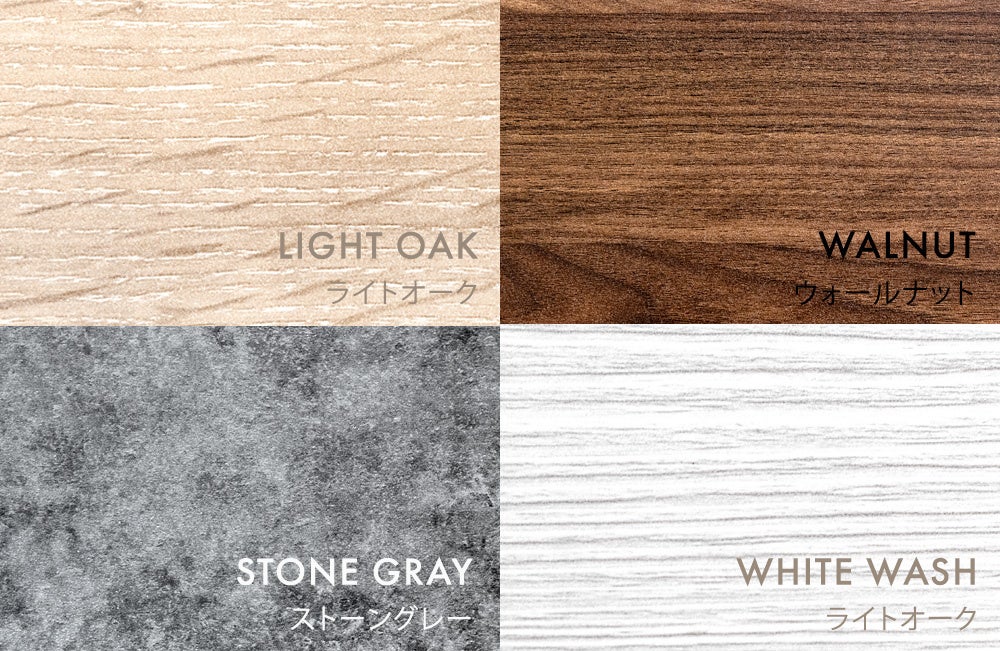 木目調は【ライトオーク】【ウォールナット】【ホワイトウォッシュ】の3カラーでナチュラルテイストで幅広いインテリアスタイルに対応でき、柔らかな空間づくりが可能です。
