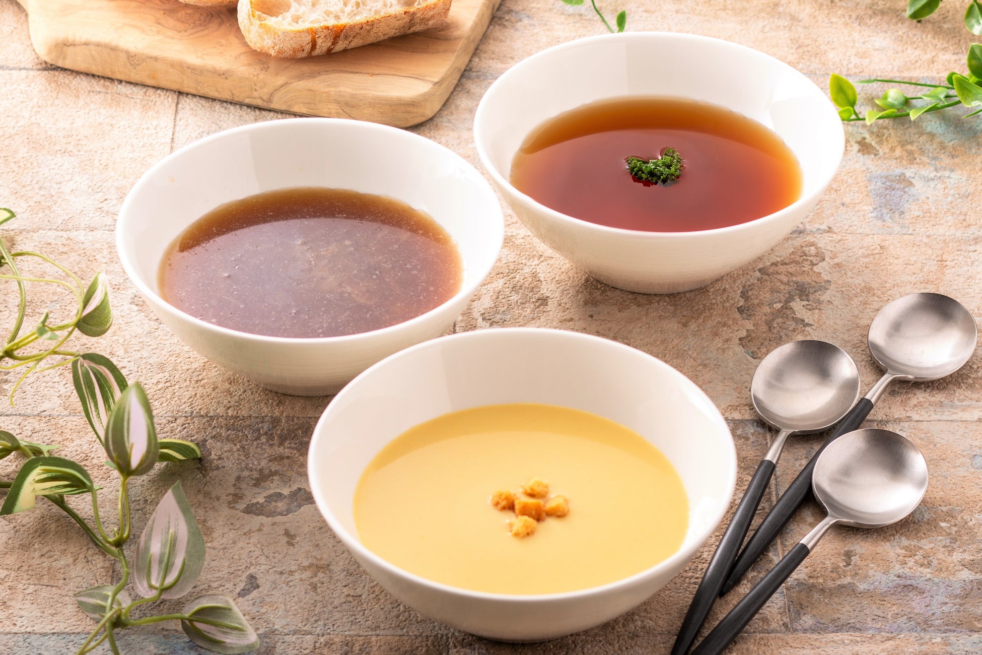 寒い季節にぴったりのホテルメイドスープからお好みの3品を選べるセットです。ホテル伝統のビーフコンソメや濃厚でコクのあるスイートコーンのクリームスープもラインナップ。